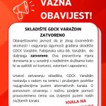 IZVANREDNA VIJEST – SKLADIŠTE GDCK VARAŽDIN ZATVORENO